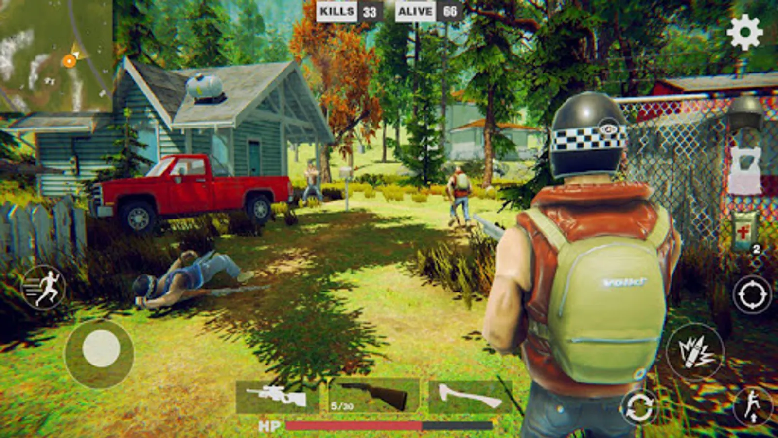 You will be inserted onto the battleground from air and have to find the weaponry, health kit and food to survive.