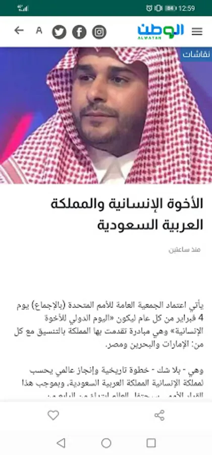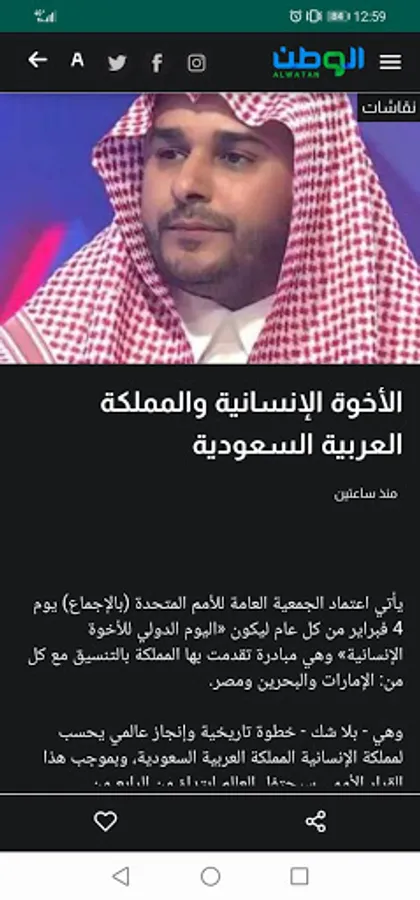 The Saudi Al-Watan Newspaper is issued by the Aseer Press and Publishing Corporation, which the Custodian of the Two Holy Mosques King Abdullah bin Abdulaziz (may God have mercy on him) laid the foundation stone for in Abha on May 8, 1998. His Royal Highness Prince Sultan bin Abdulaziz (may God have mercy on him) inaugurated the Foundation and Printing Center building on the seventh of July 2000. Whereas, His Royal Highness Prince Khalid Al-Faisal bin Abdul Aziz launched the first issue on behalf of the Minister of Interior and Chairman of the Supreme Council for Media at the time, His Royal Highness Prince Nayef bin Abdulaziz (may God have mercy on him) on the 30th of September 2000. Al-Watan newspaper is the first local daily newspaper based on an integrated scientific study, and the first newspaper in the Arab region for which a previous scientific study was developed, and a comprehensive study by 40 researchers.
