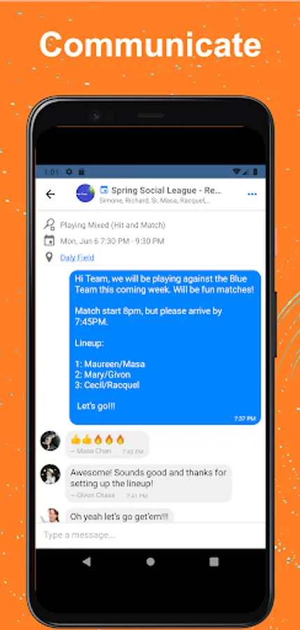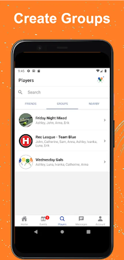 Mark players as Friends and create a short list of players you schedule and communicate with most often. Send private messages and share administration of frequent events.