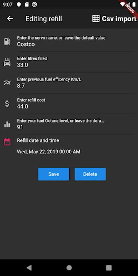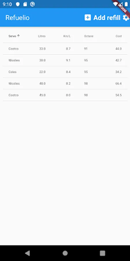 Designed to store and display fuel cost, servo price tracking and fuel efficiency