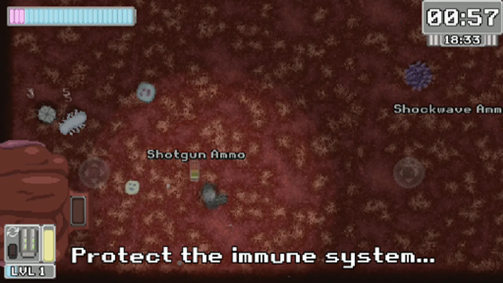 You can protect the natural immunity, you can eradicate the pathogens threatening the person, you can die, or you can survive in this 90's style indie retro video