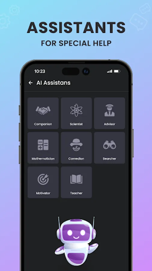 1. Choose Your Perfect Assistant: Select from a diverse range of AI assistants including companions, scientists, advisors, mathematicians, comedians, searchers, motivators, or teachers. Customize your AI bot to cater to your specific needs.