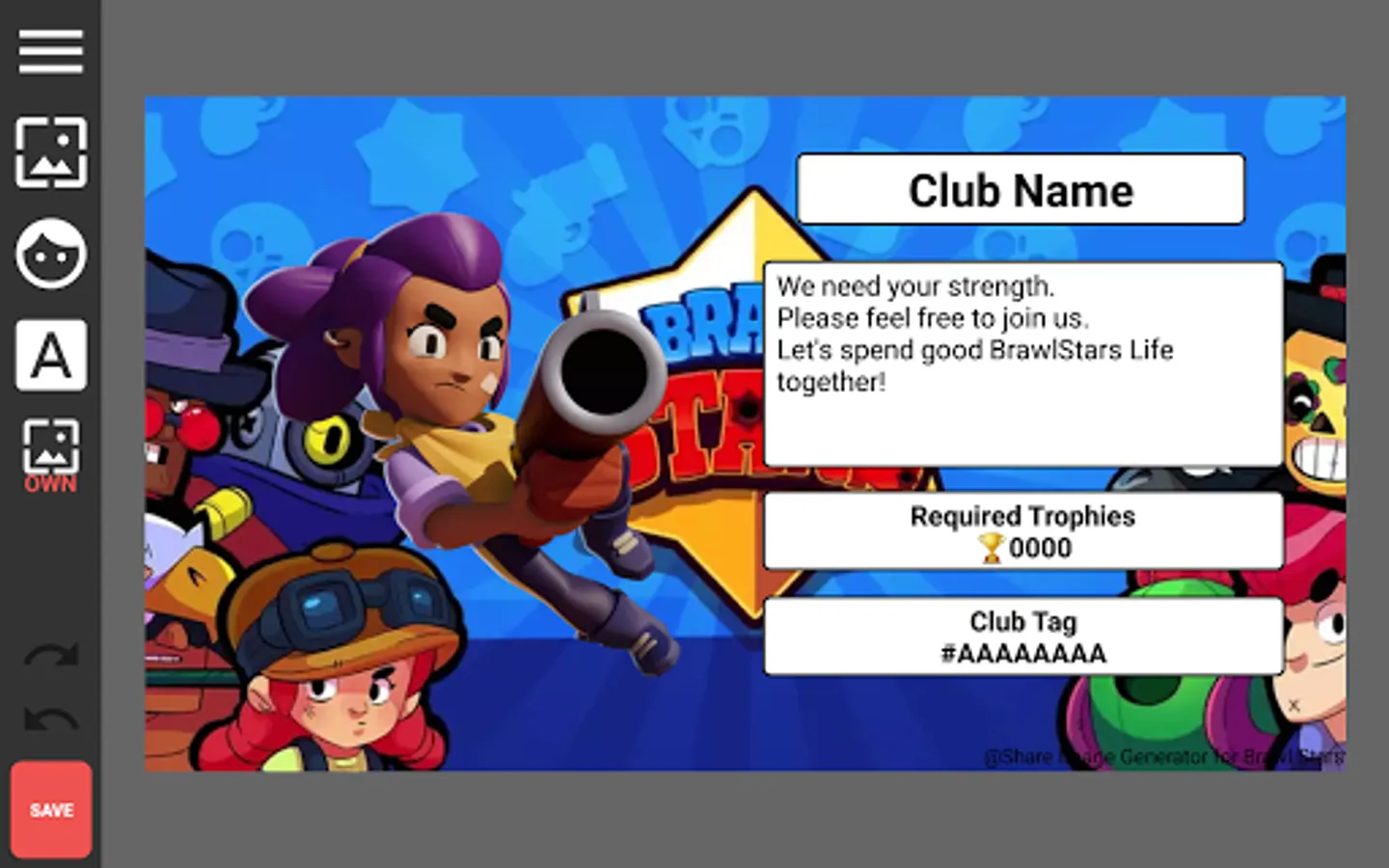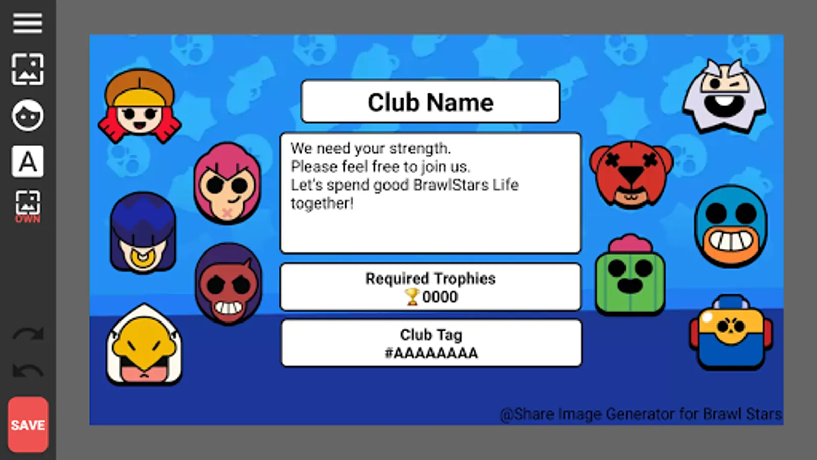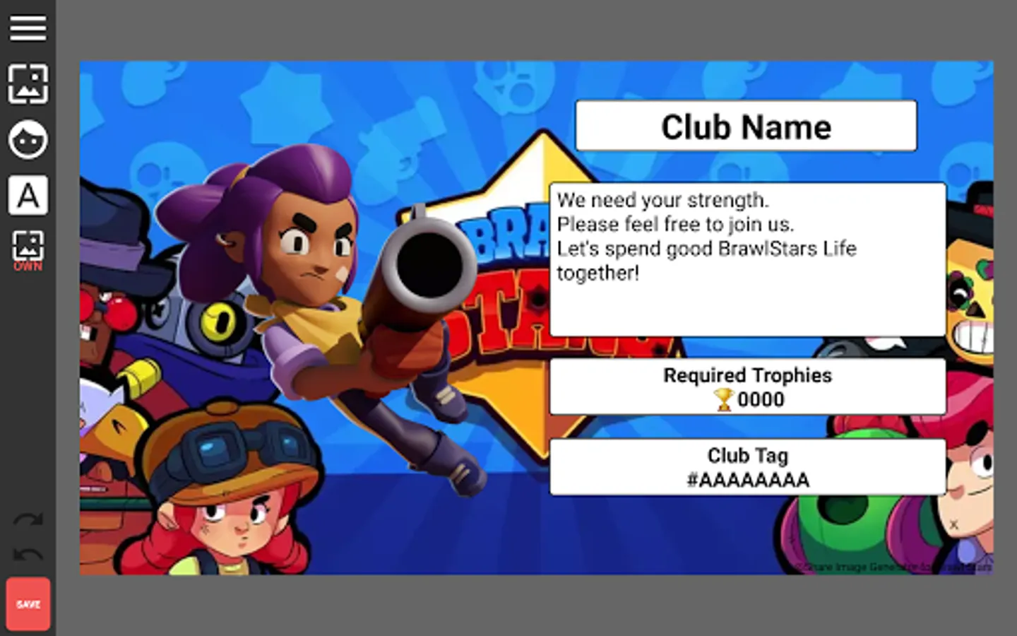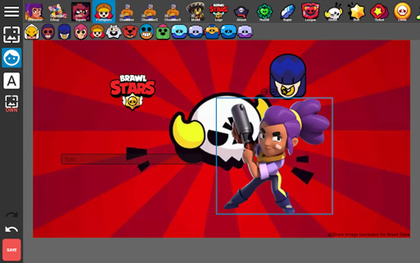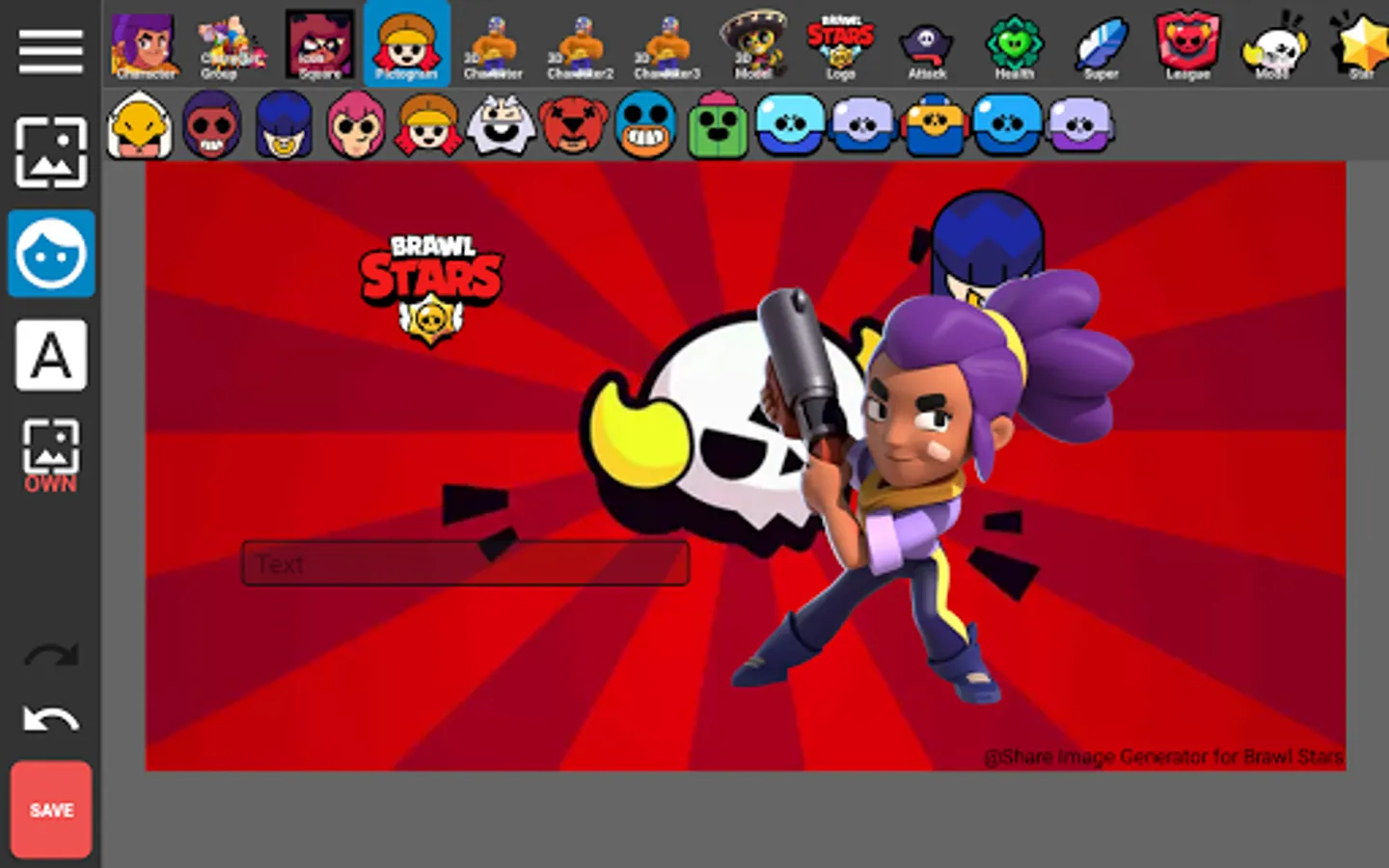 This app can create your own introduction image using stamp images of characters and objects appearing in "Brawl Stars".