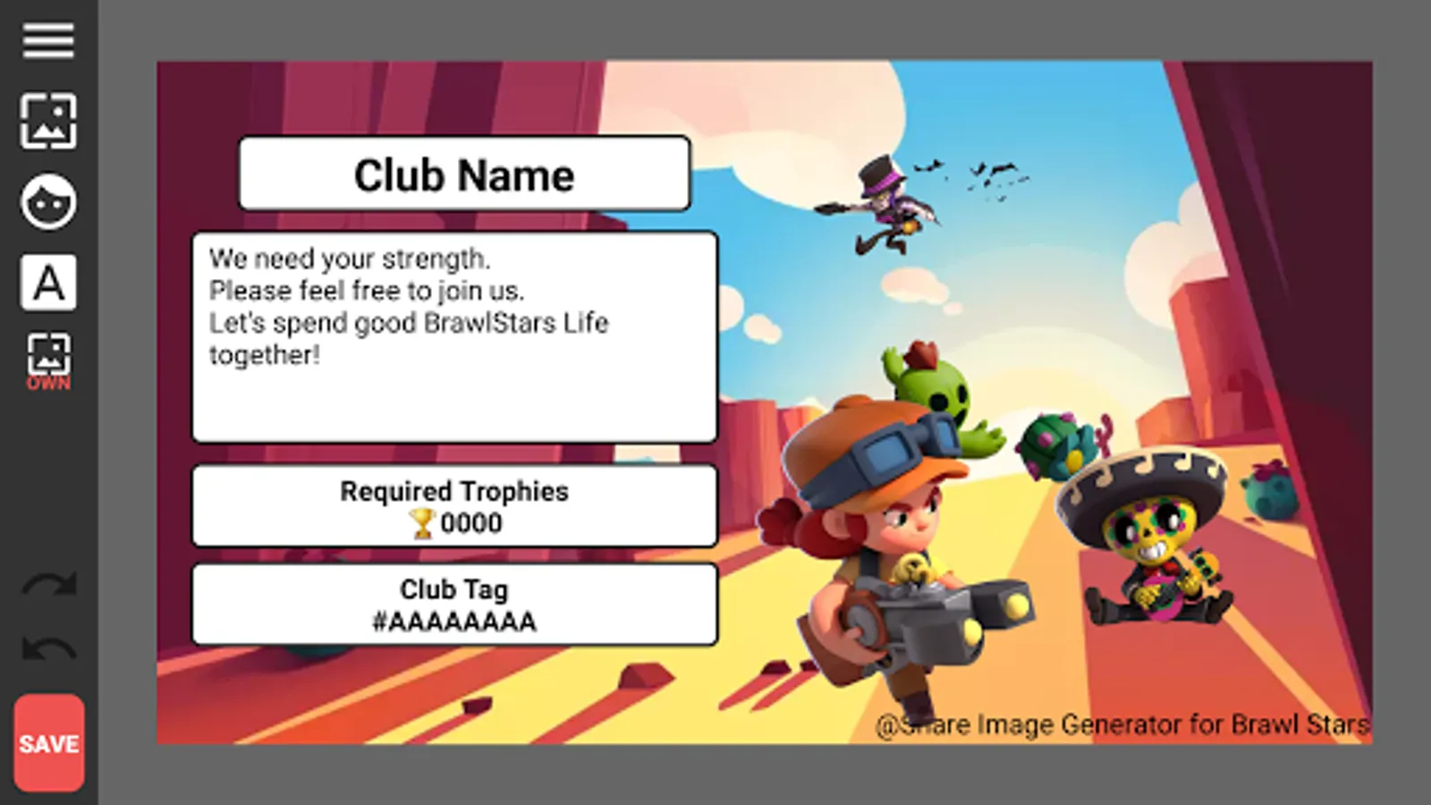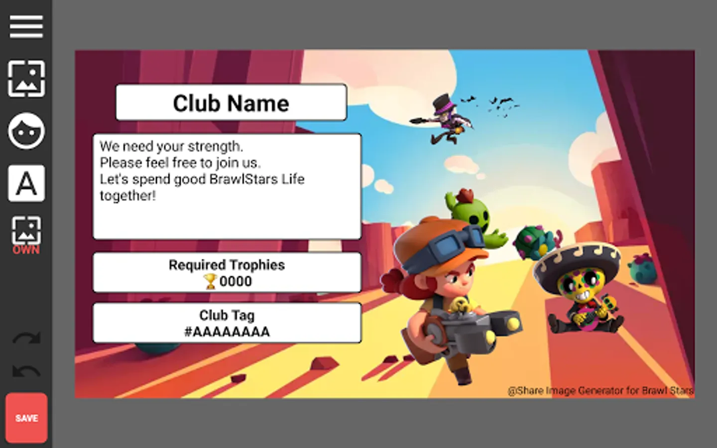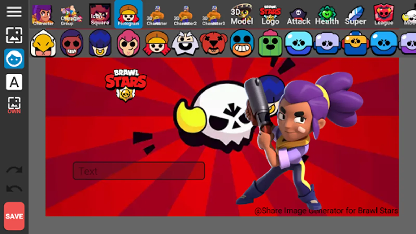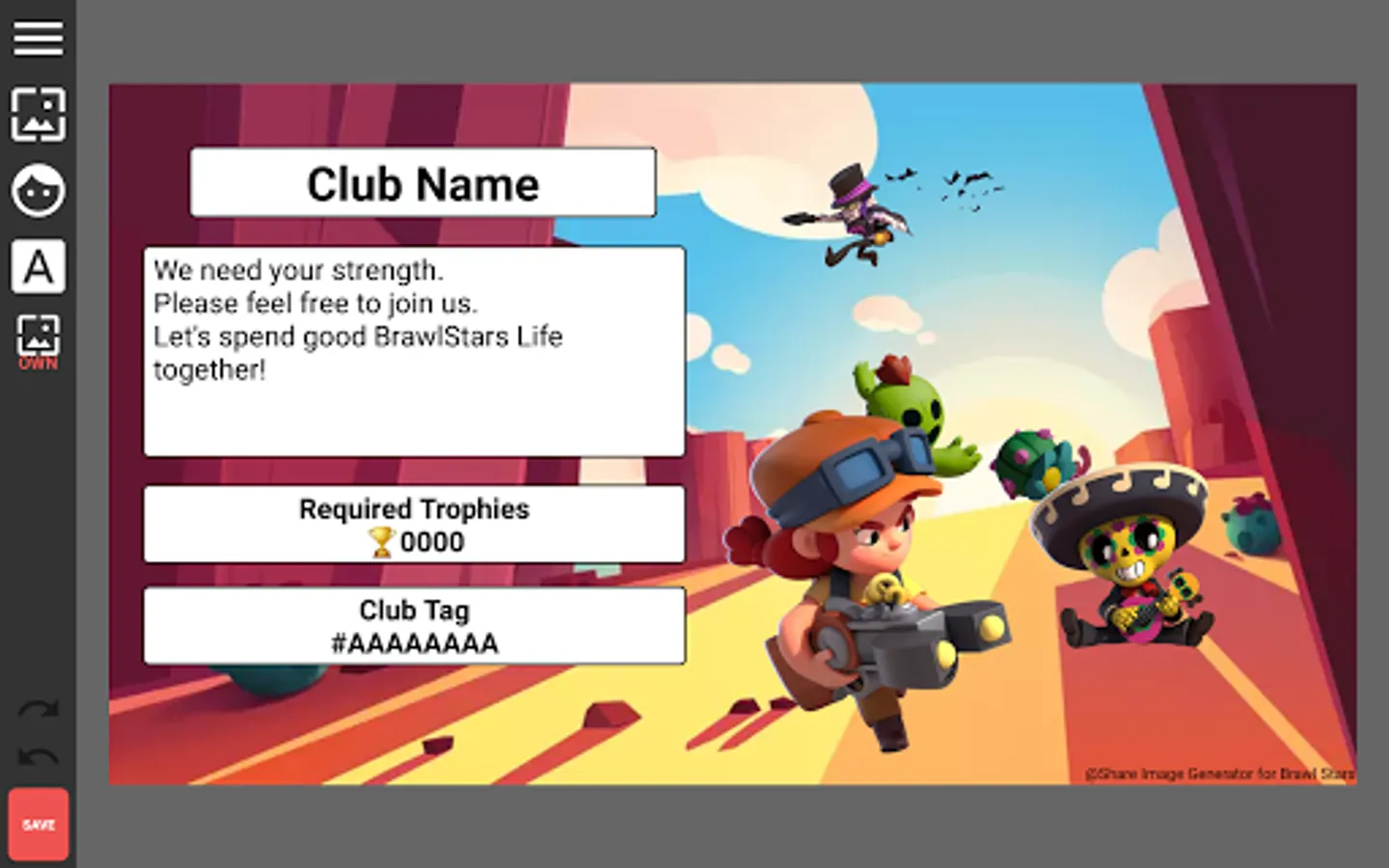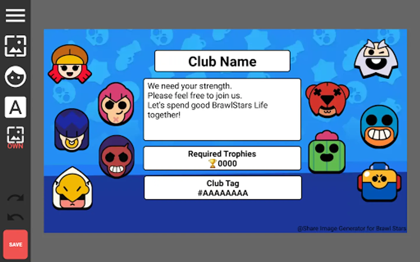 This app can create your own introduction image using stamp images of characters and objects appearing in "Brawl Stars".