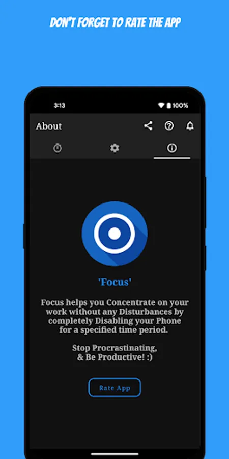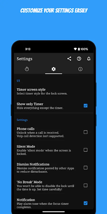 Focus is designed to help you beat phone addiction by disabling or locking your phone for a set period. Concentrate on your work, study, or any activity that demands your attention, without the digital interruptions.