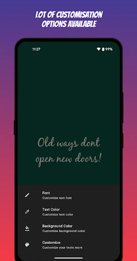 This simple and easy-to-use app allows you to customize text, choose from 25+ fonts, and select from a variety of colors.