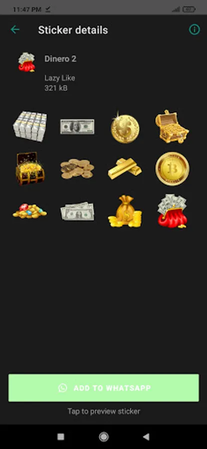 Animated Money Stickers for WhatsApp is an application that provides Money Stickers. This sticker is perfect for chatting with your closest relatives, friends or family.