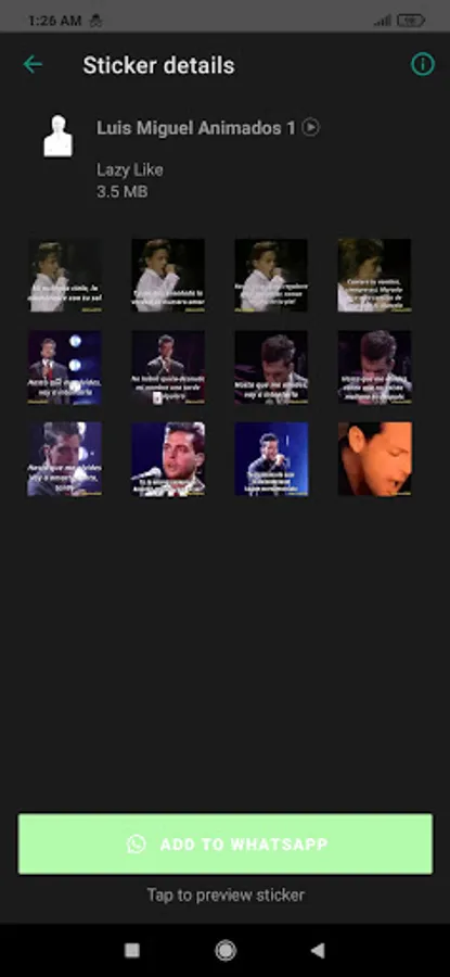 Animated Luis Miguel Stickers for WhatsApp is an application that provides Luis Miguel Stickers. This sticker is perfect for chatting with your closest relatives, friends or family.