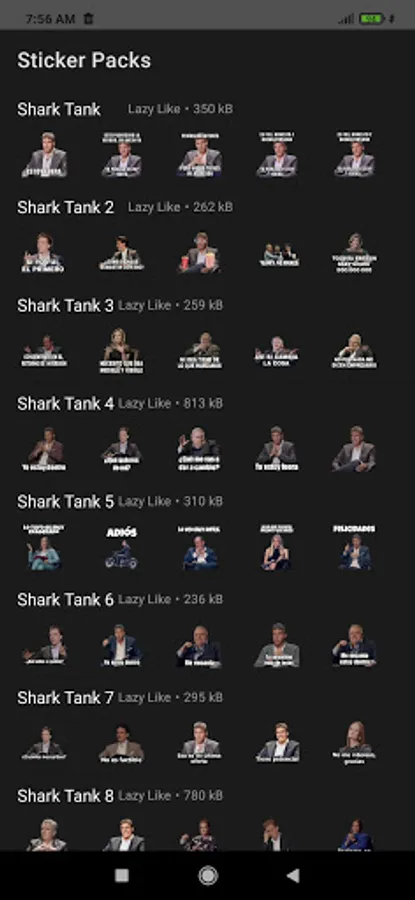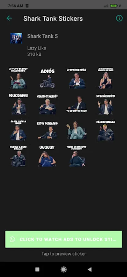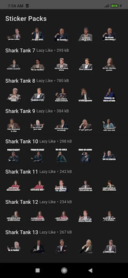 All the stickers in this app are available for free. There are more than 300 Shark Tank stickers.