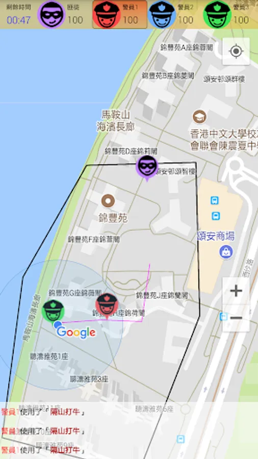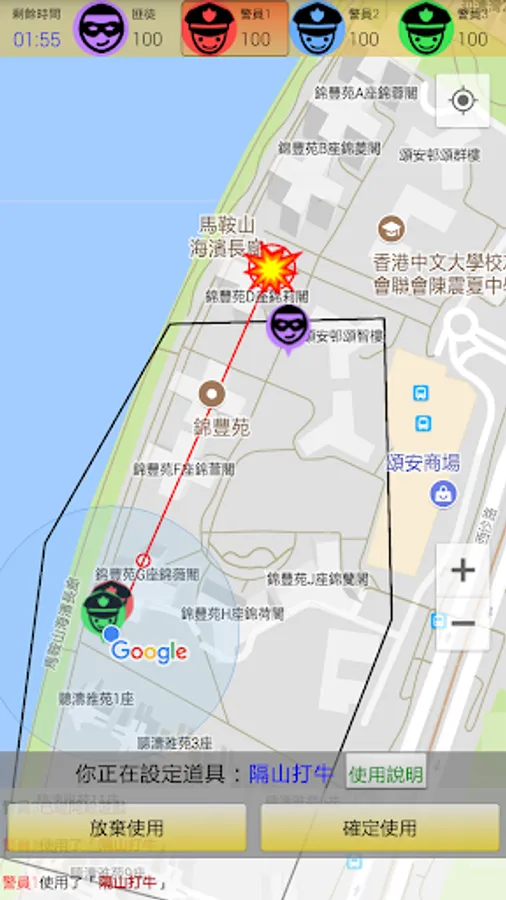 請君入甕:在遊戲開始前,隨意地圖上任意地點放置一個半徑20米的圓圈作為捕捉匪徒的陷阱。當遊戲時間結束之時,如果警方仍未能成功拘捕匪徒,但匪徒身處的位置剛好在此圈內,則屬於匪徒自投羅網,由警方勝出本次遊戲。