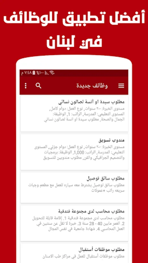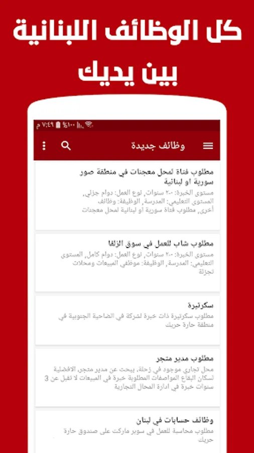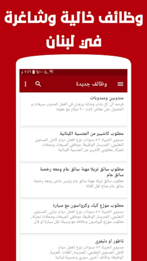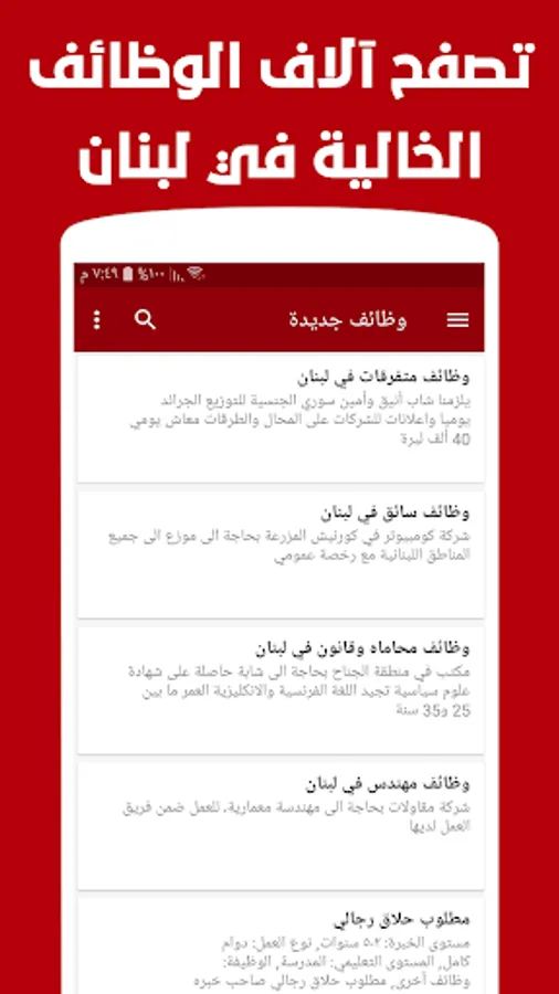 Jobs in Lebanon application brings you all the jobs from the internet and official newspapers in Lebanon in one place