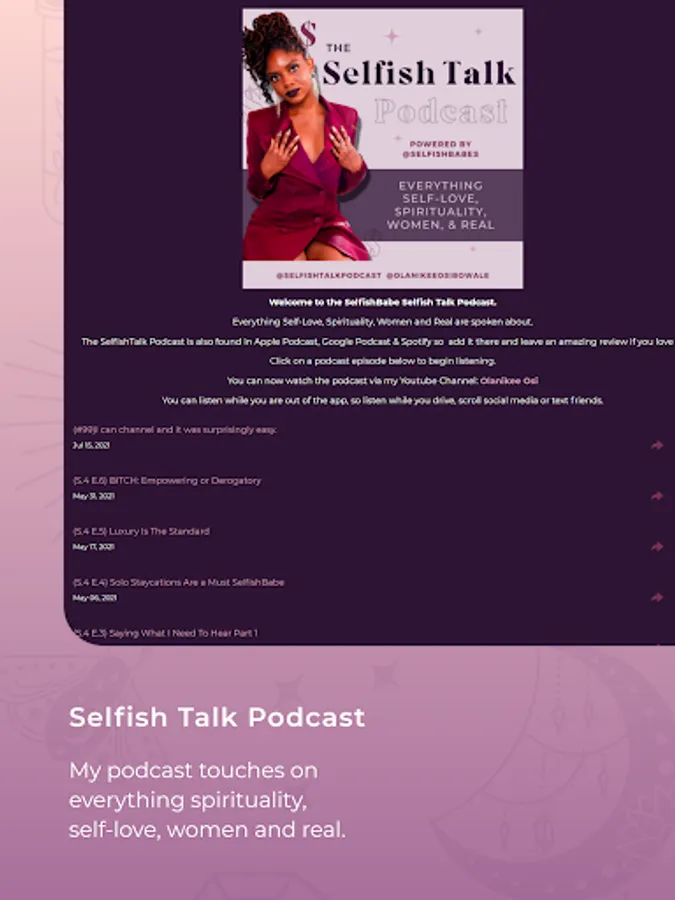 💎#SELFISHBABE is a personal development and lifestyle brand for women who are learning to selfishly and authentically love themselves created by OlanikeeOsi, a spiritual woman loving herself, in turn, helping millions. Add her on Instagram @OlanikeeOsi