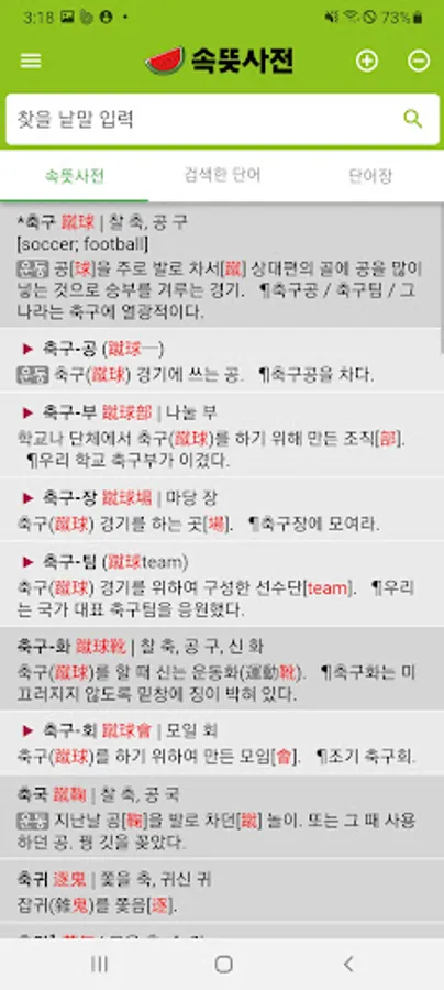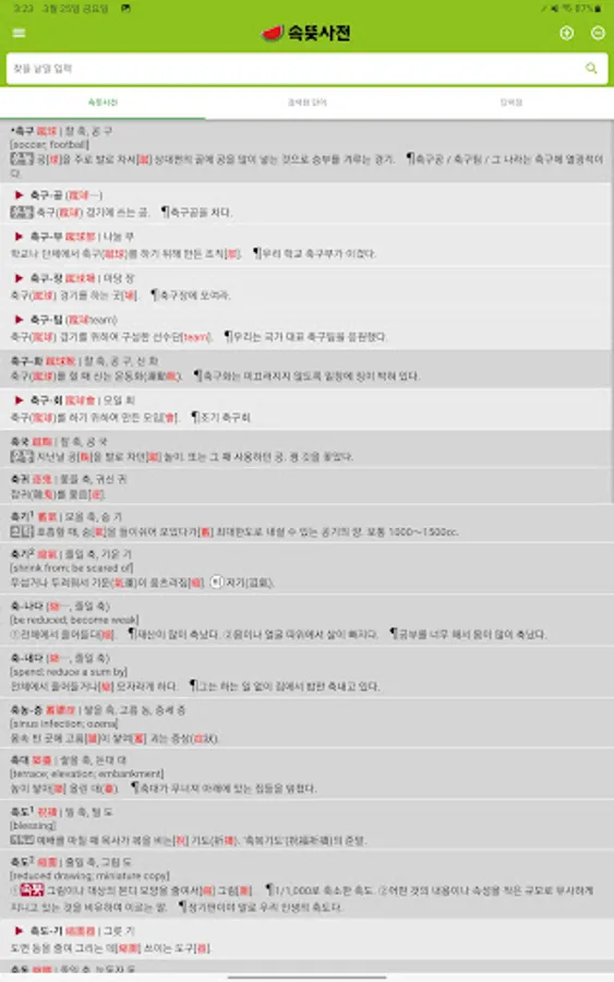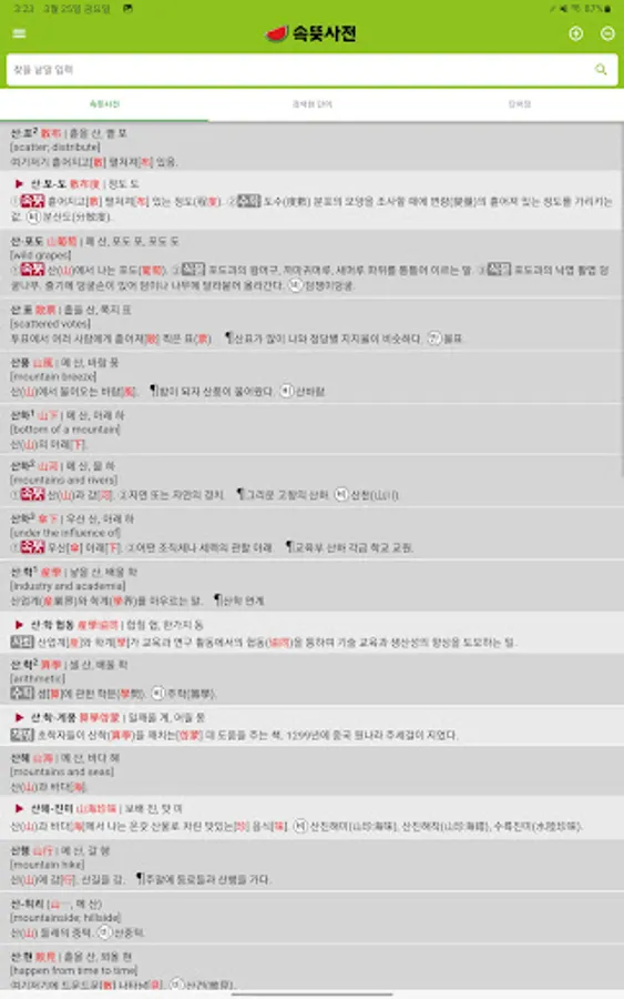 (1) If you search in Hangul, you can find the inner meaning of Chinese characters.