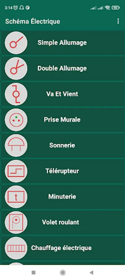 (lamp, Single ignition, double ignition, two-way switch, electrical outlet, Controlled Socket, Unipolar remote control switch and bipolar remote control switch, Day-night contactor, Motion Detector, Electric Roller Shutter, Mains surge arrester, electrical panel timer, Color of Electrical Wires , Electrical Symbol.