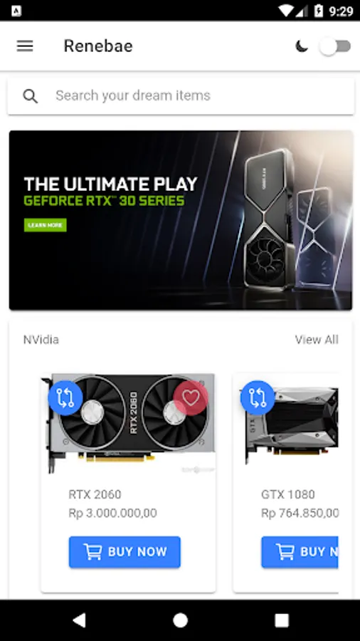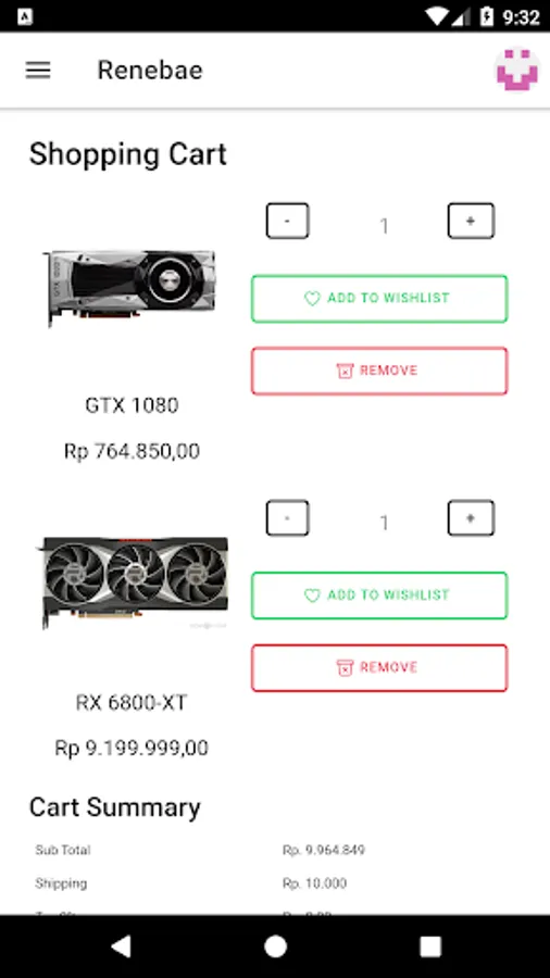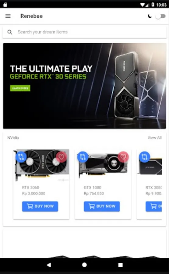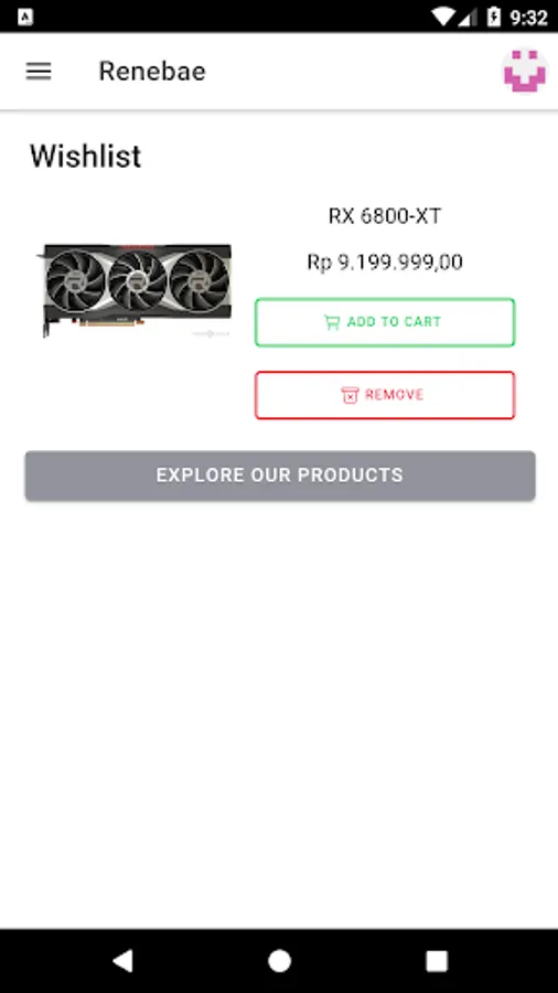 Renebae merupakan sebuah aplikasi e-commerce yang menyediakan layanan khusus untuk pedagang yang menjual kartu grafis komputer / VGA. Selain menyediakan fitur pada umumnya dalam sebuah aplikasi e-commerce, pengguna juga dapat menggunakan fitur compare untuk membandingkan VGA yang ingin dibeli.