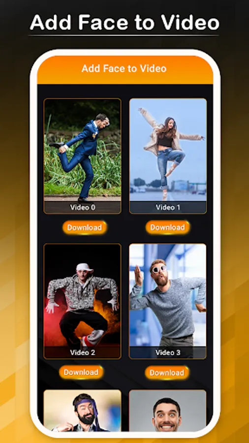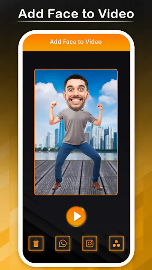 Add Face to Video - Face Changer Video Editor app allows users to change anyone's faces into a video clip with a selection of faces part from a body. Create instant funny video clips with face editing option via Add Face to Video - Face Changer Video Editor app. The app allows users to add face into a funny video clip or make fun with anyone to make more laugh. Just select one of your wish videos and adjust face image to video clip and save it with right-click.