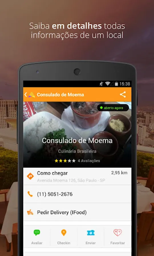 Se você ainda não sabe onde almoçar, pode pesquisar as avaliações de restaurantes próximos ou até mesmo descobrir o número do delivery da pizzaria, com a facilidade de fazer seu pedido em poucos passos direto no aplicativo do Apontador. Encontre o que você procura através de filtros e recomendações, e quando chegar, não se esqueça de fazer o check-in e avaliar os locais com dicas para seus amigos e conhecidos. Junte-se aos milhões de usuários e veja avaliações, dicas, fotos e descontos dos mais de 7 milhões de locais cadastrados. O Apontador será o seu guia de viagem e te ajudará a descobrir lugares fantásticos!