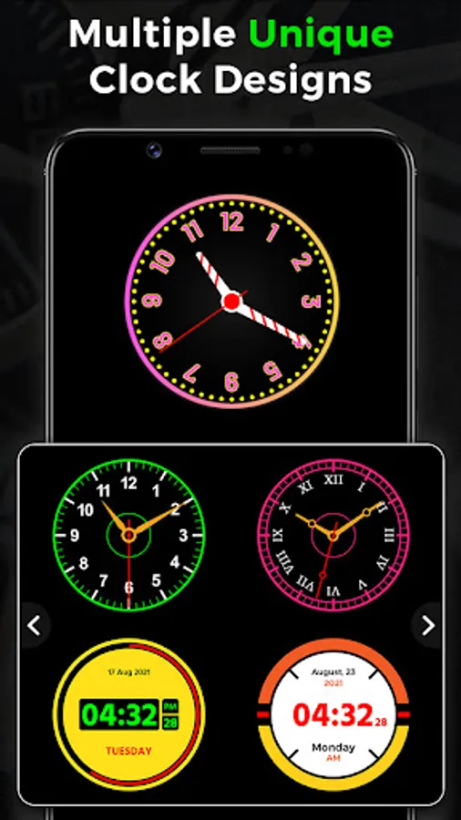 Customized analog and digital clocks are waiting for the mobile home screen with the current date, time, and month. Set the clock size in your desired position to make it perfect live wallpaper and widget for the always-on display home screen. Choose a custom color for the clock screensaver and clock style on the lock screen to make the clock appearance shiny.