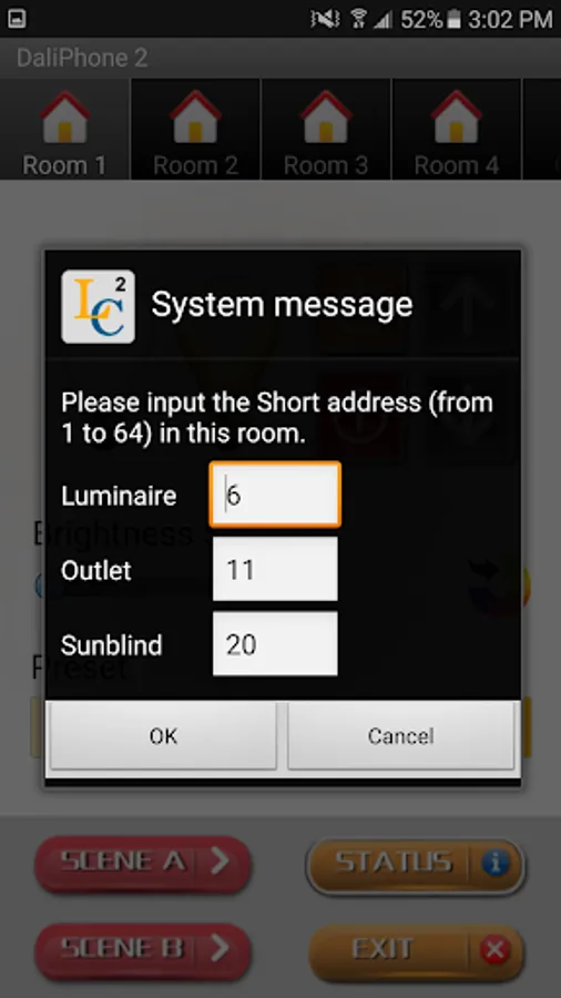 3) The DALI lighting system consists of max 64 luminaires/devices, 16 Groups, and 16 Scenes.