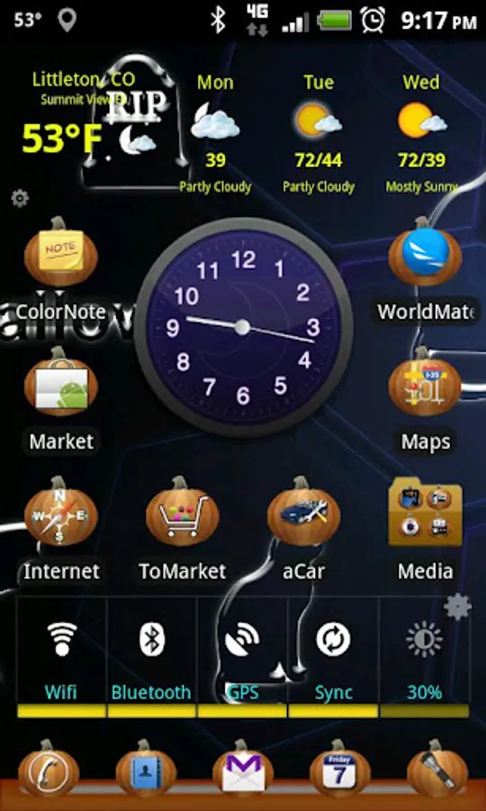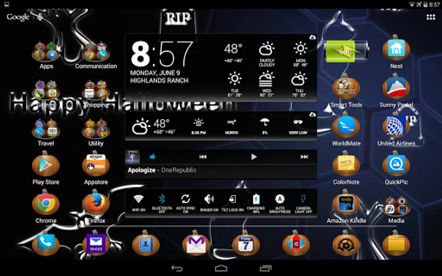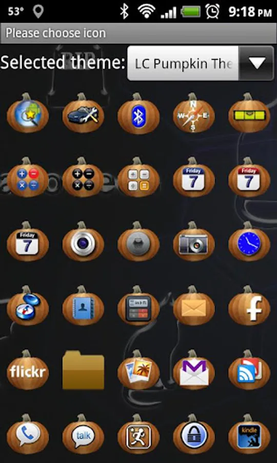 This theme will change the look of your desktop/home screen and application drawer icons and must be selected from Nova or Apex launcher.