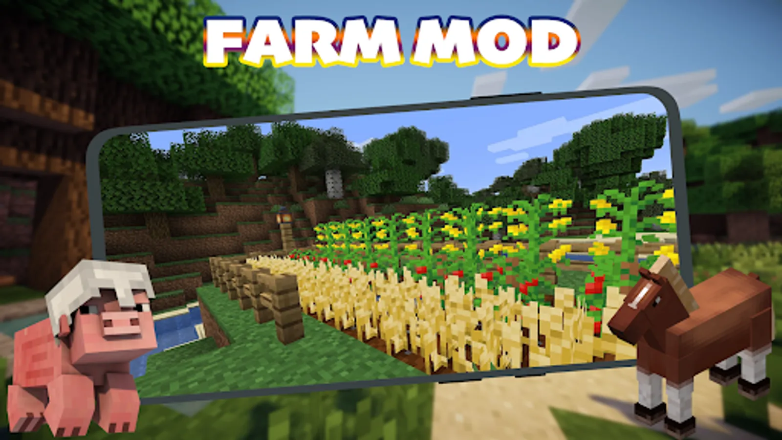 Do you want to create your own Farm in MC PE (pocket edition)? Try our Farm Mod for Minecraft PE! If you are a big fan of animals, pets, wild animals, plants, crops, trees, Farm Mod for MCPE is an addon which helps to explore farming. This Farm add-on is full of crafting, creating and has realistic graphics and textures, as well as animals from different biomes for your multicraft game.