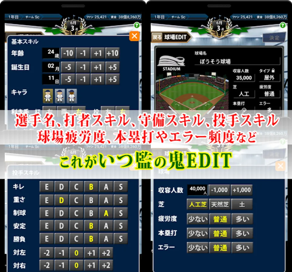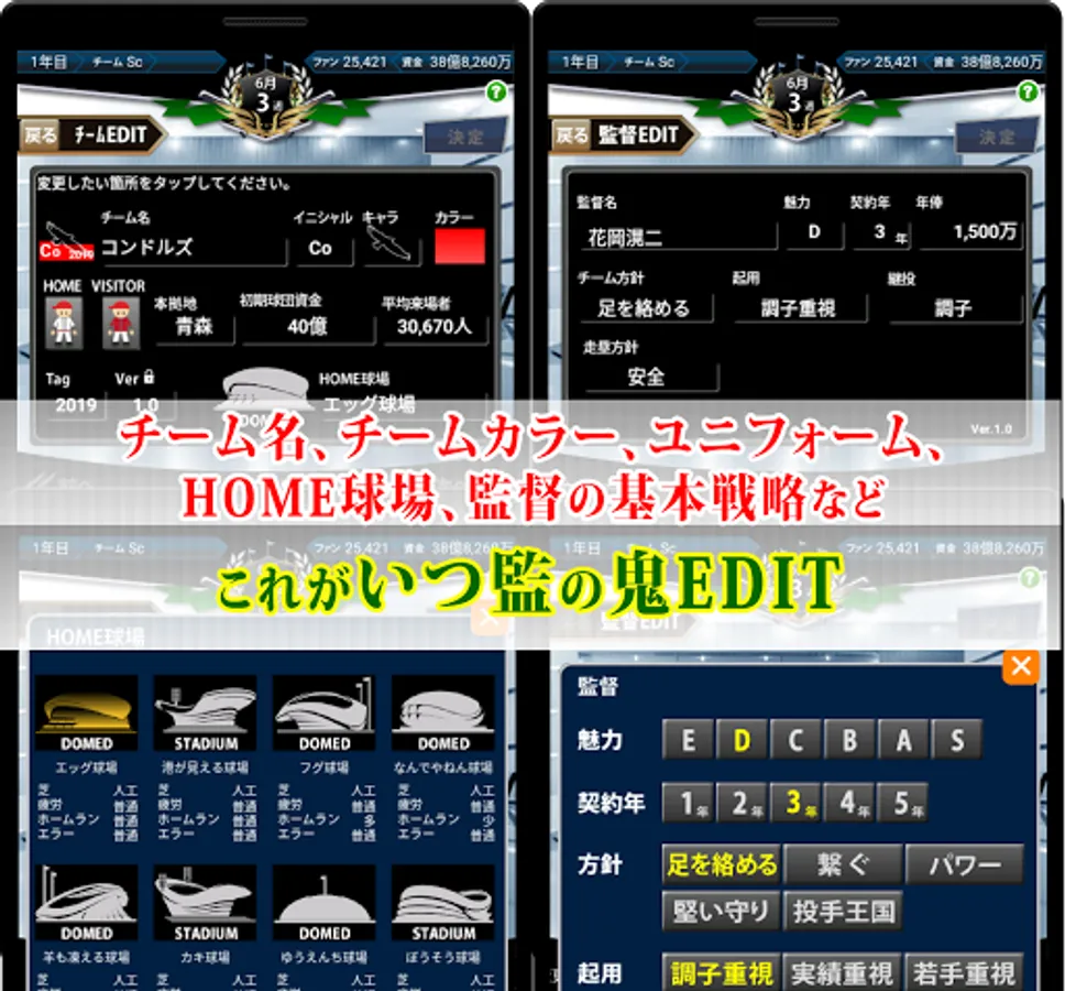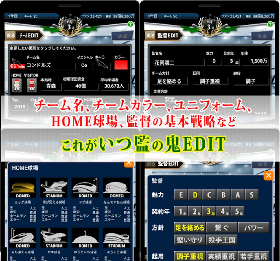 Player EDIT, as well as ballpark, team information, EDIT of other team managers,