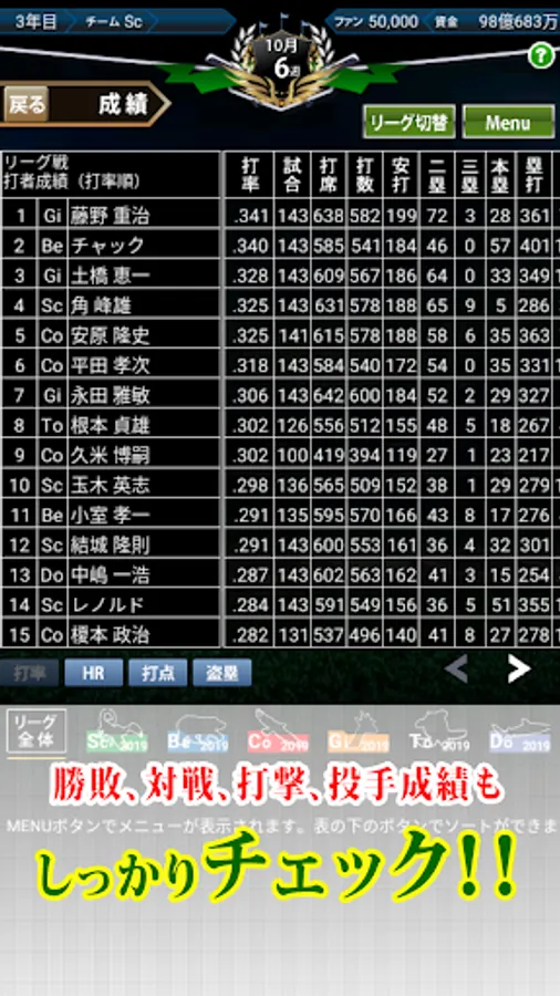 It is one of the few smartphone baseball games where you can enjoy pennant races and championship games.