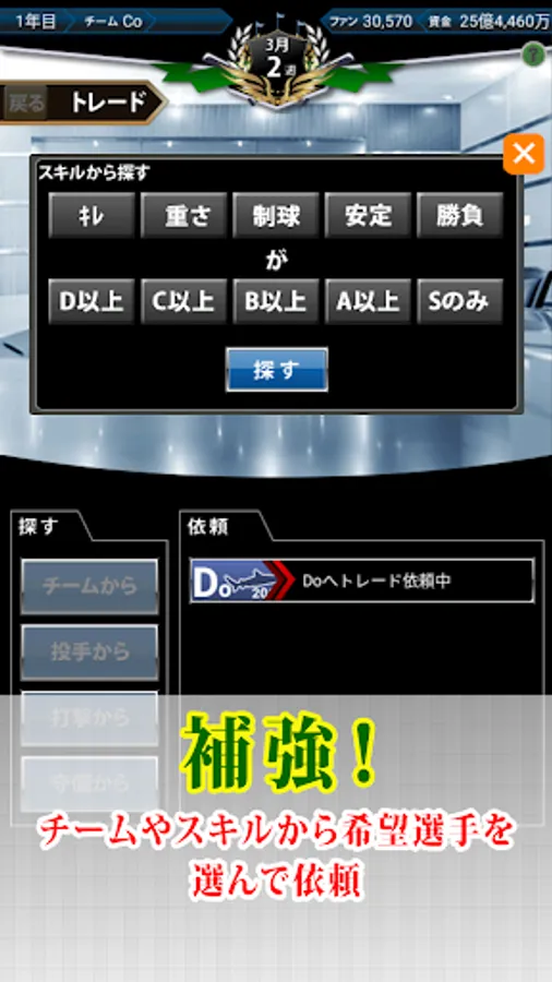 This is a game where you become a baseball manager and develop players, create your favorite team with drafts, trades, free agents, helpers, etc., and aim to win the championship by making full use of all strategies.