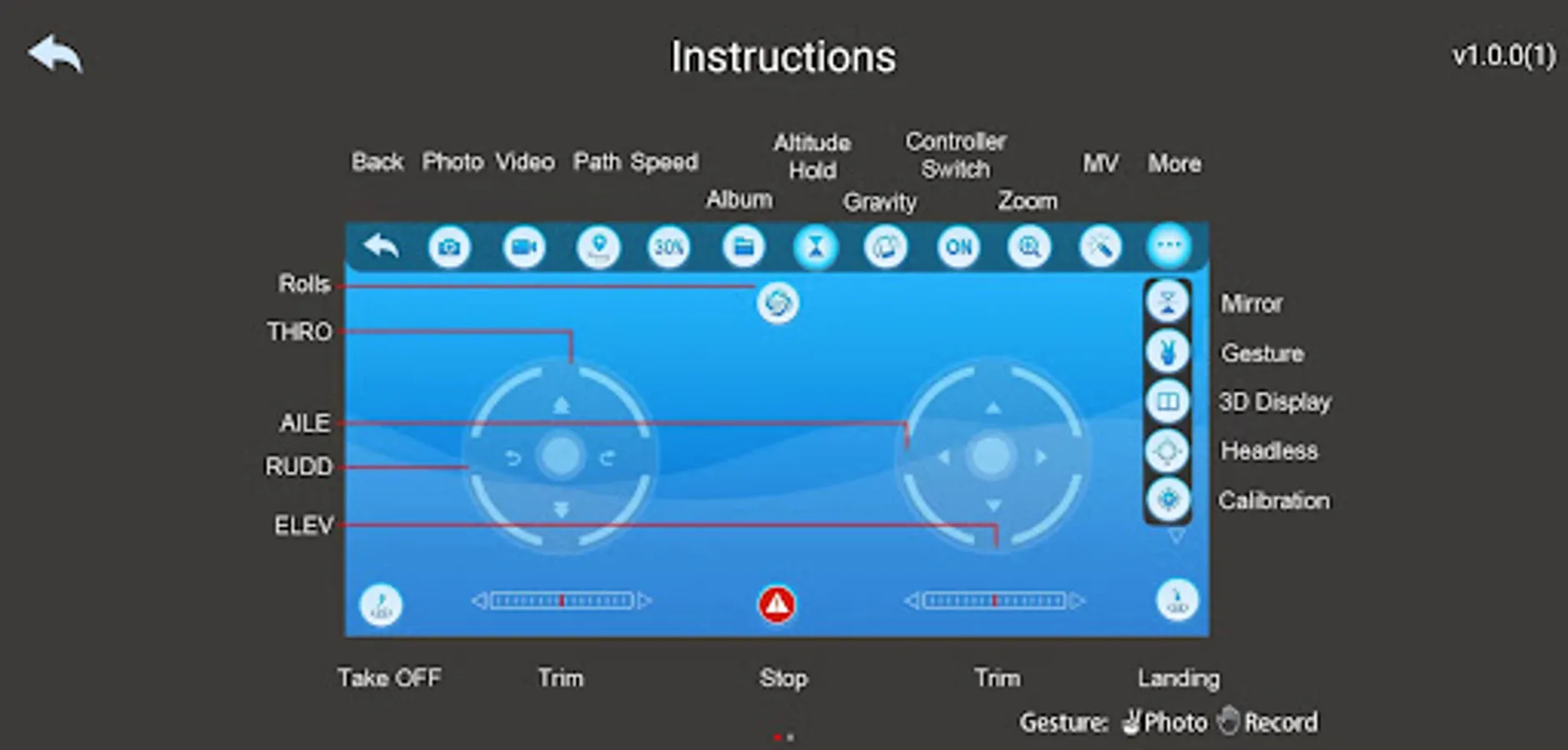 2. The flight attitude and movement of drone can be controlled through the control page.