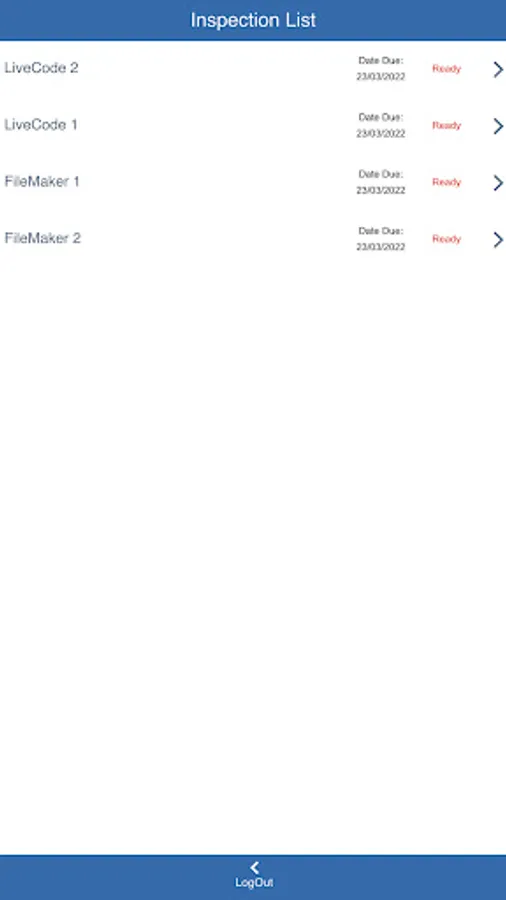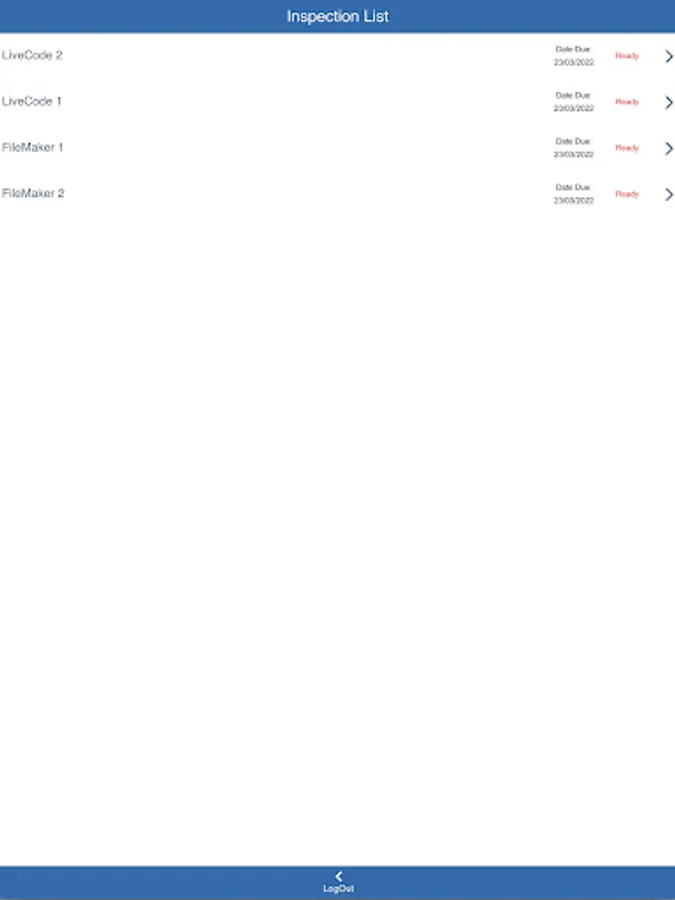 This app allows inspection and maintenance of fire safety equipment on various sites. Operatives can sign on, carry out a checklist inspection and sign off on a site.