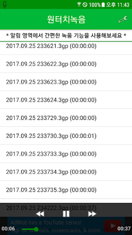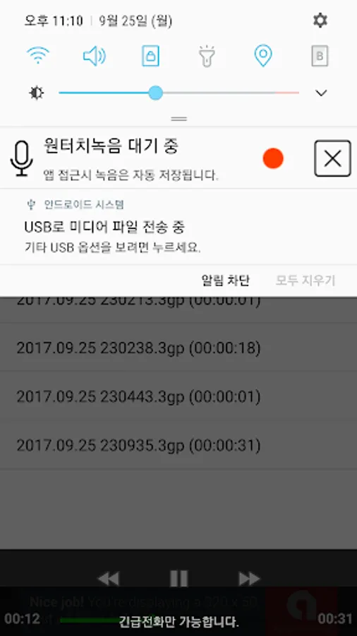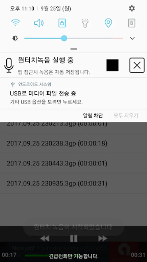 You can start/stop recording with one touch in the notification area at the top of One-Touch Recording.