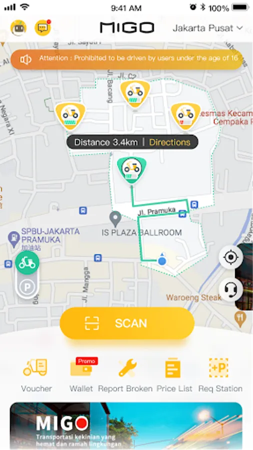 MIGO is the first Ebike sharing app in Indonesia. It provides a fast, easy, environmentally friendly, and affordable transportation alternative. Most payments in MIGO App are done virtually so it can be easily accessed. Ebike is suitable to be driven by all user because it is easily handled and is not heavy. In big cities, Ebike is an excellent transportation alternative to deal with the traffic so user can travel faster. Since users can ride Ebike by themselves without a driver, they decide their own destination freely and use Ebike without time restraint.
