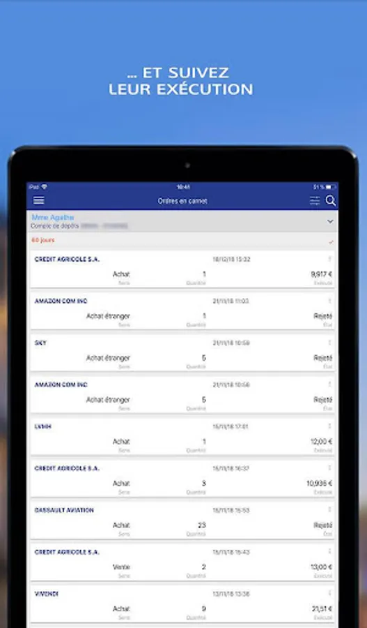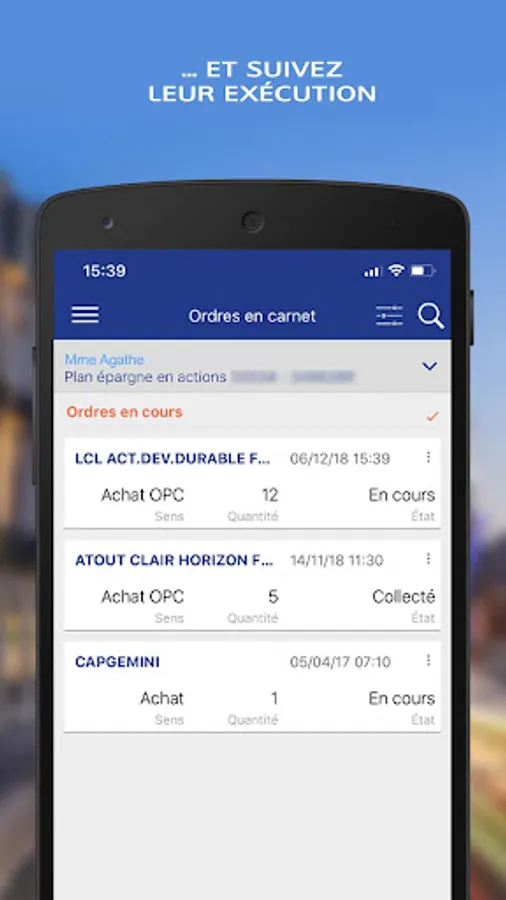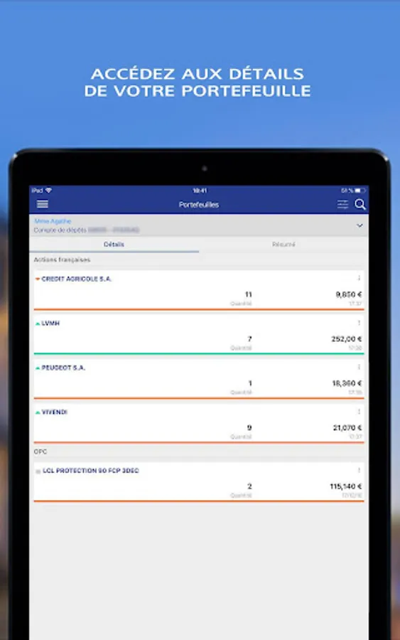 Complete and intuitive, the Stock Exchange application allows you to monitor your LCL portfolio directly.