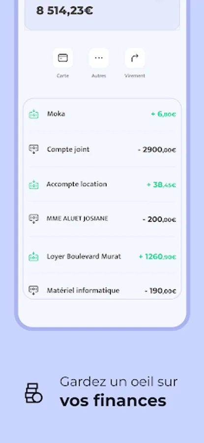 - Personalize your business card: pin code, remote blocking, payment and withdrawal limits, etc.