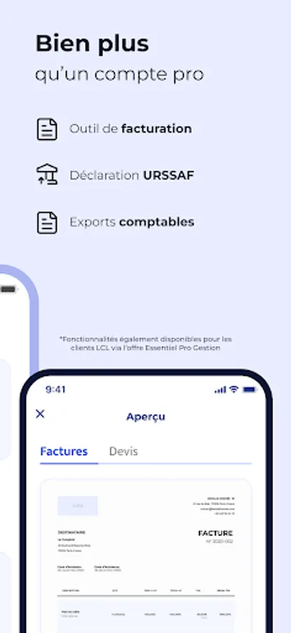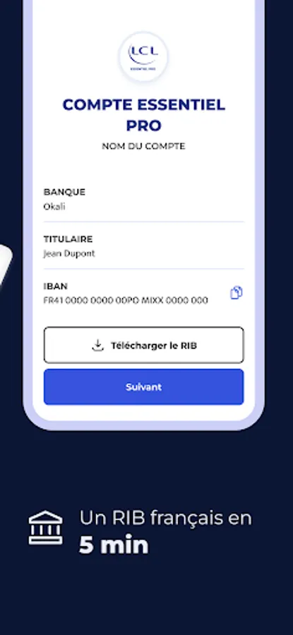 (1) The Essentiel Pro offer is presented by LCL and taken out with Okali, a subsidiary of the same group to which LCL belongs, an electronic money institution registered with the ACPR under number 17 448 (https://www.regafi. fr), SAS, share capital: 4,660,962.00 euros, registered office: 50 rue la Boétie, 75008 Paris, RCS Paris 890 111 776.