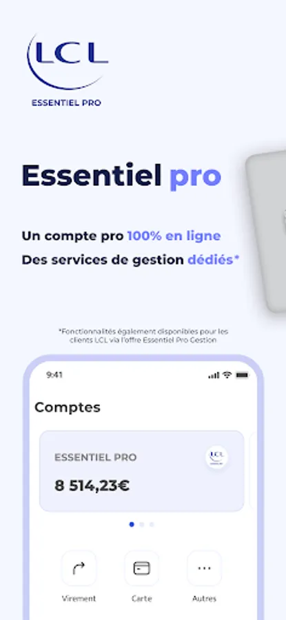 For more information, go to [https://www.lcl.fr/professionnel/compte-bancaire-professionnel/compte-essentiel-pro-en-ligne](https://www.lcl.fr/ professional/professional-bank-account/professional-essential-account-online) or consult your LCL Access space to find out more about the LCL ESSENTIEL PRO Gestion offer.