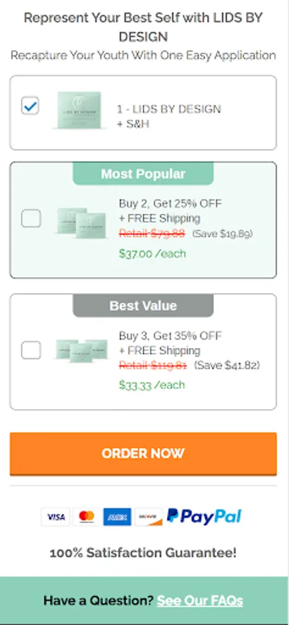 People think if they have saggy eyelids, the only options are to get surgery or live with it. With LIDS BY DESIGN, you won’t have to do either.