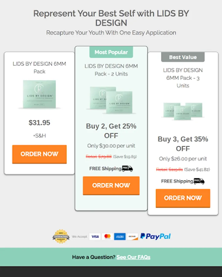 If you’re looking for safe and natural results to droopy, saggy, eyes, look no further. We’ve tested every eyelid strip on the market to bring you the very best. LIDS BY DESIGN can help you achieve amazing results in just a few seconds!