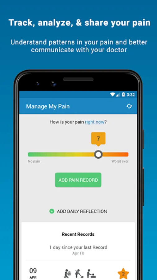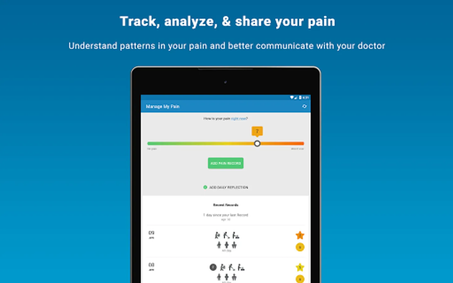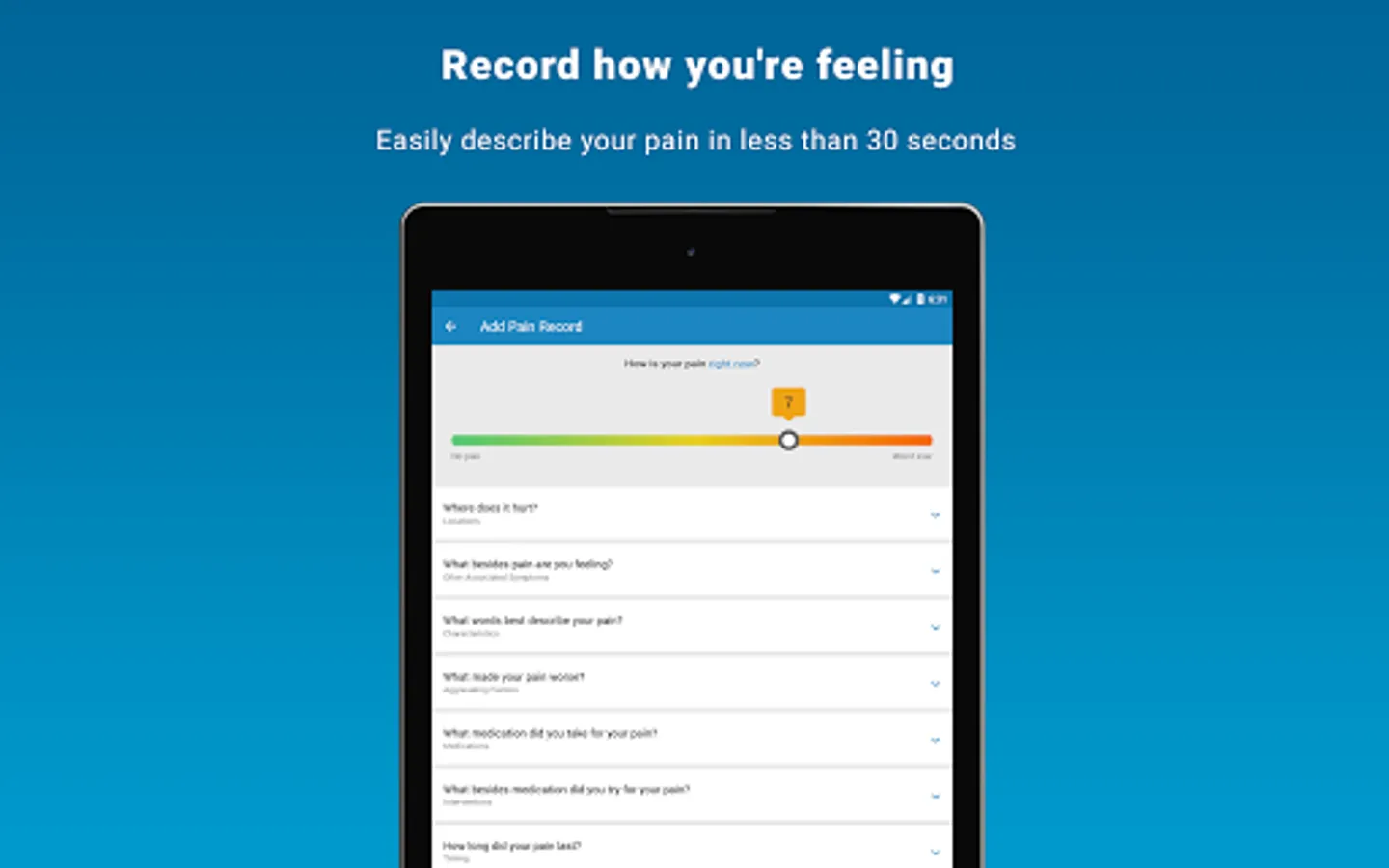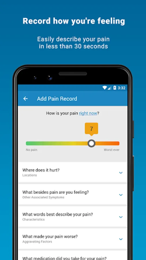 • Record how you're feeling: Easily describe your pain in less than 30 seconds