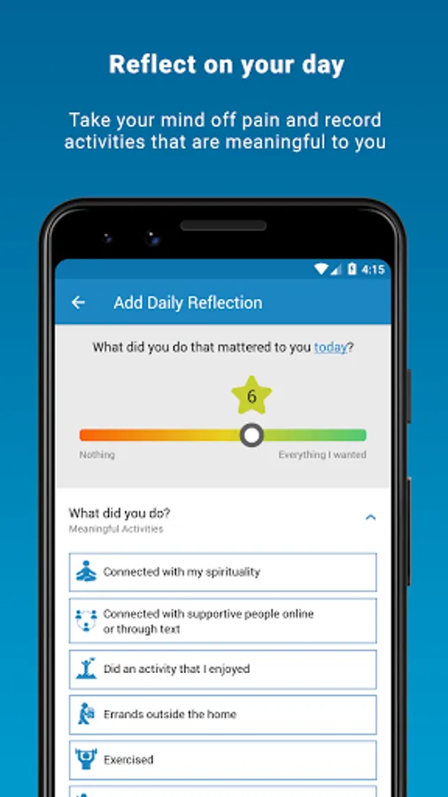 • Reflect on your day: Take your mind off pain and record activities that are meaningful to you
