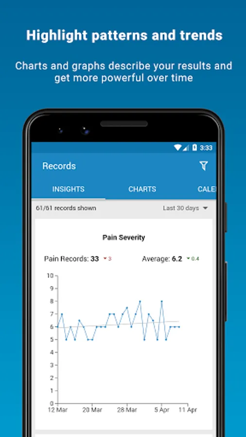 • Describe your pain to your doctor: Summarize your pain through unique reports that your doctor will actually read