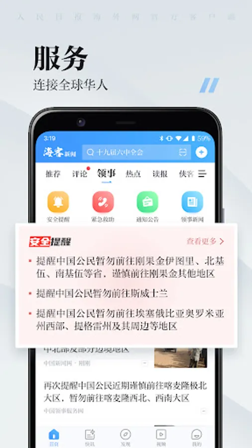“Haike News” is a comprehensive news application built by People's Daily Overseas Edition. Inheriting the idea of “promoting China’s voice, serving overseas compatriots”, Haike news offers authoritative news information and timely interpretation on current affairs. “Haike News” serves more than 50 million overseas Chinese, millions of overseas students and overseas Chinese workers. Positioned in covering global news comprehensively and updated in line with the times transformation, “Haike News” offers high-quality special topics, creates brand reading, provides exclusive observations, original commentaries and shares current affairs with “Haike” readers.