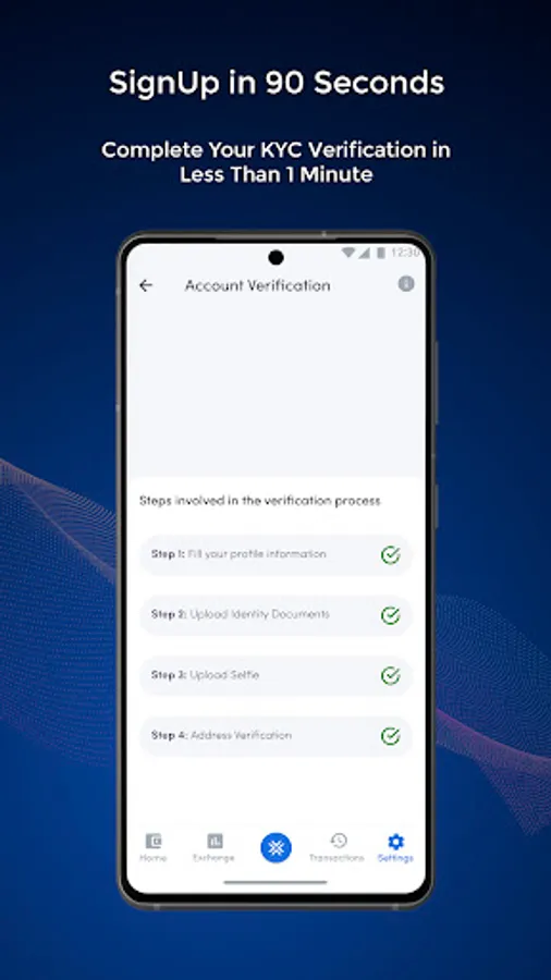 Within minutes of signing up, you can upload the required documents and have your KYC processed.