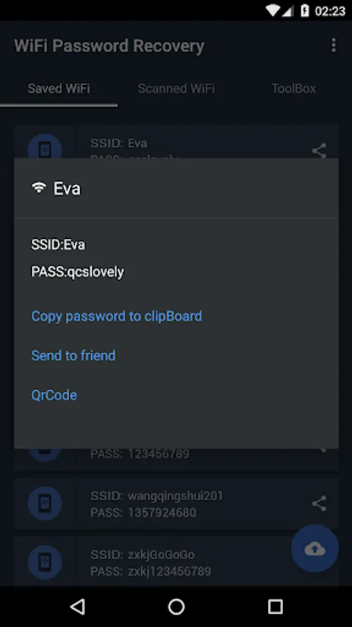 *Share:Share WIFI Passwords by some way or create QR code for other apps to scan it