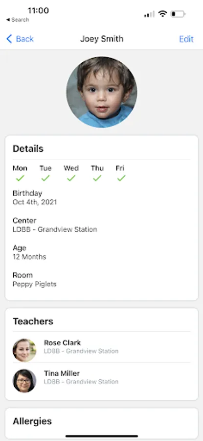 ■ View child profile details including any allergies, special dietary requirements, or health care plans