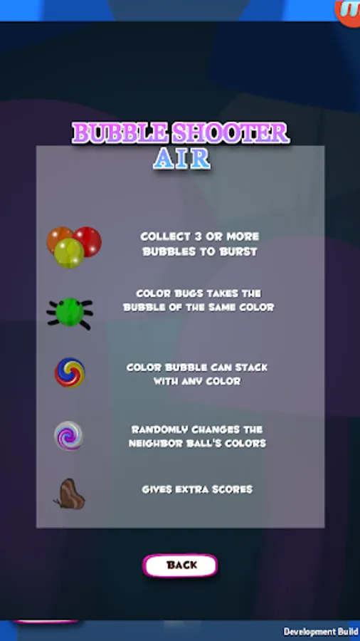 Not just colorful bubbles, you will find colorful beetles too. The beetles will help you to crush and splash all kind of bubbles. Pay attention for the rainbow ball! That awesome ball will very useful, yet useless, depending on how good you play with it.