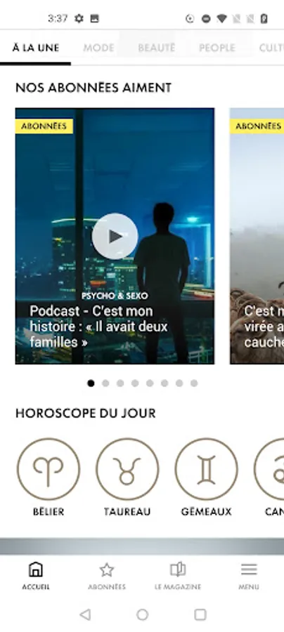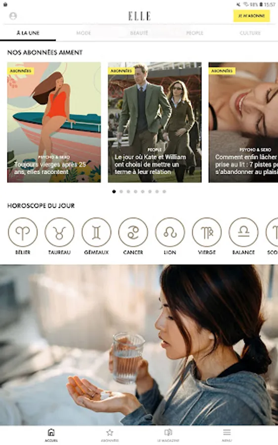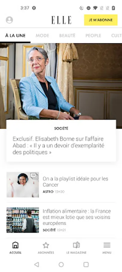 - Choisissez les thèmes sur lesquels vous souhaitez être alerté(e) par la rédaction de ELLE en vous abonnant aux notifications "Actualités", "Bons plans" et "Horoscope" (à activer dans les Paramètres de l'application).