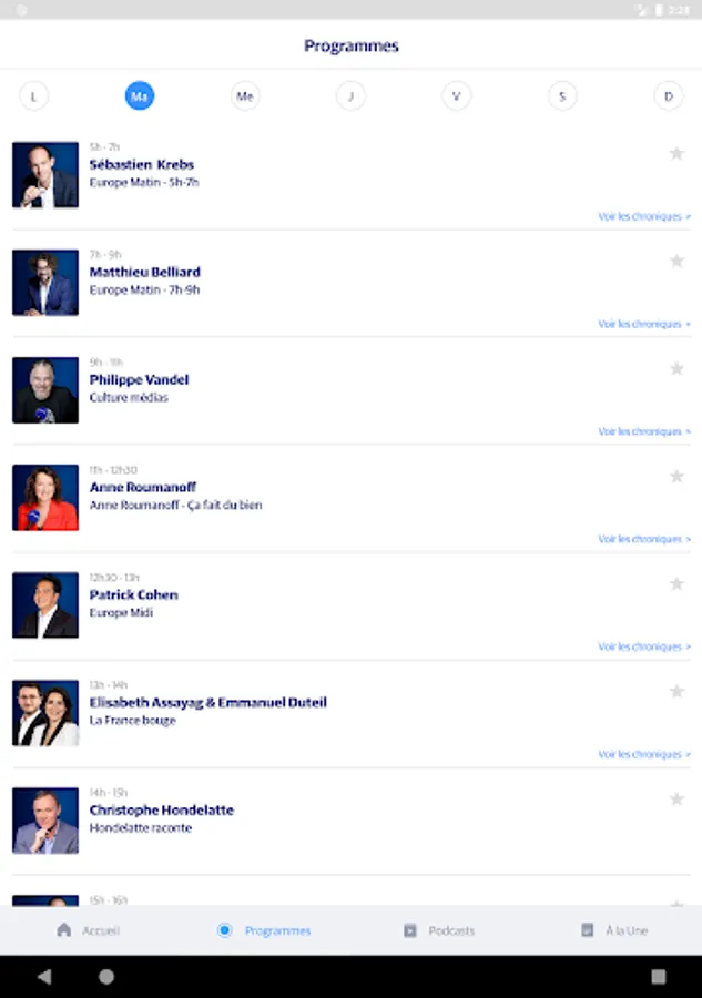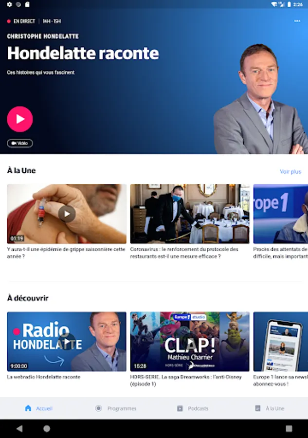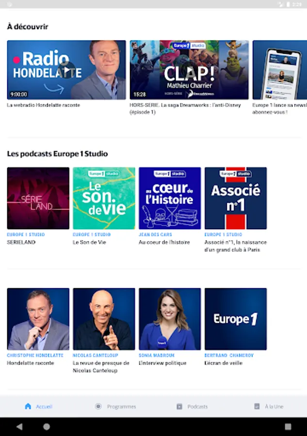 Throughout your day, find your favorite shows and chronicles in replay. Consult the program schedule and follow all the news on the Europe 1 application.