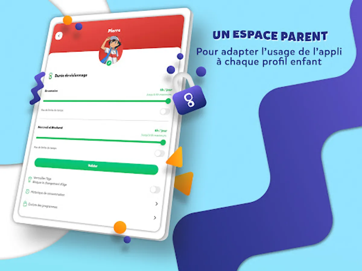 100% secure, the Gulli app adapts to the age of the child with a Gulli account, you can create up to 10 profiles to adapt each viewing time or even restrict access to certain videos.
