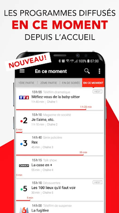 - Access directly from the homepage programs, series, film, programs, entertainment, replay broadcast now, to follow, in 1st, 2nd or last part of evening.